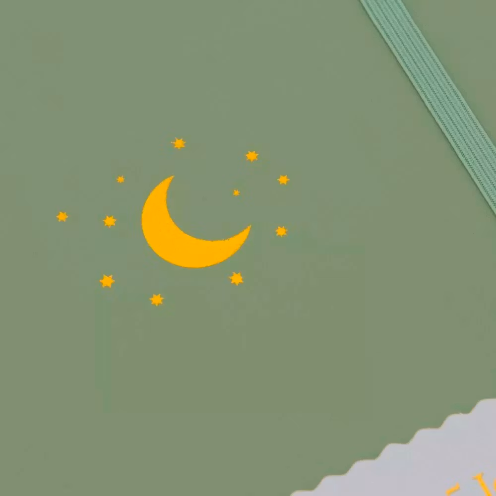 Färg: Salviagrön med guldpräglad måne och stjärnor