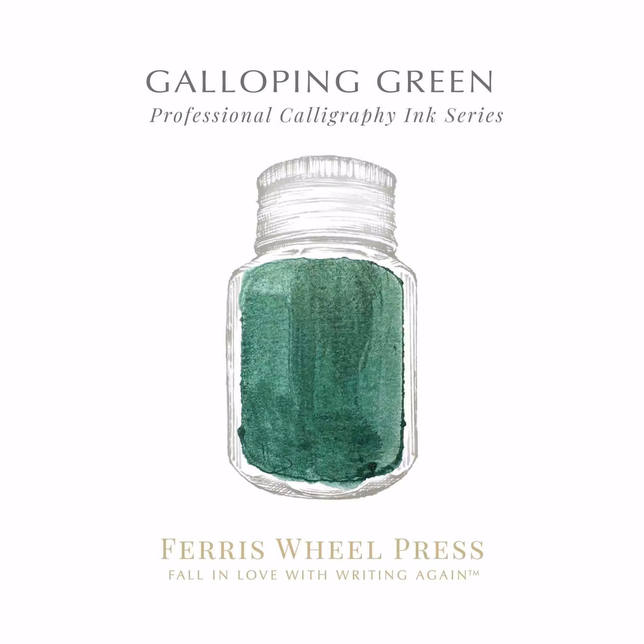 Ferris Wheel Press Calligraphy Ink i färgen Galloping Green är ett mörkgrönt kalligrafibläck.