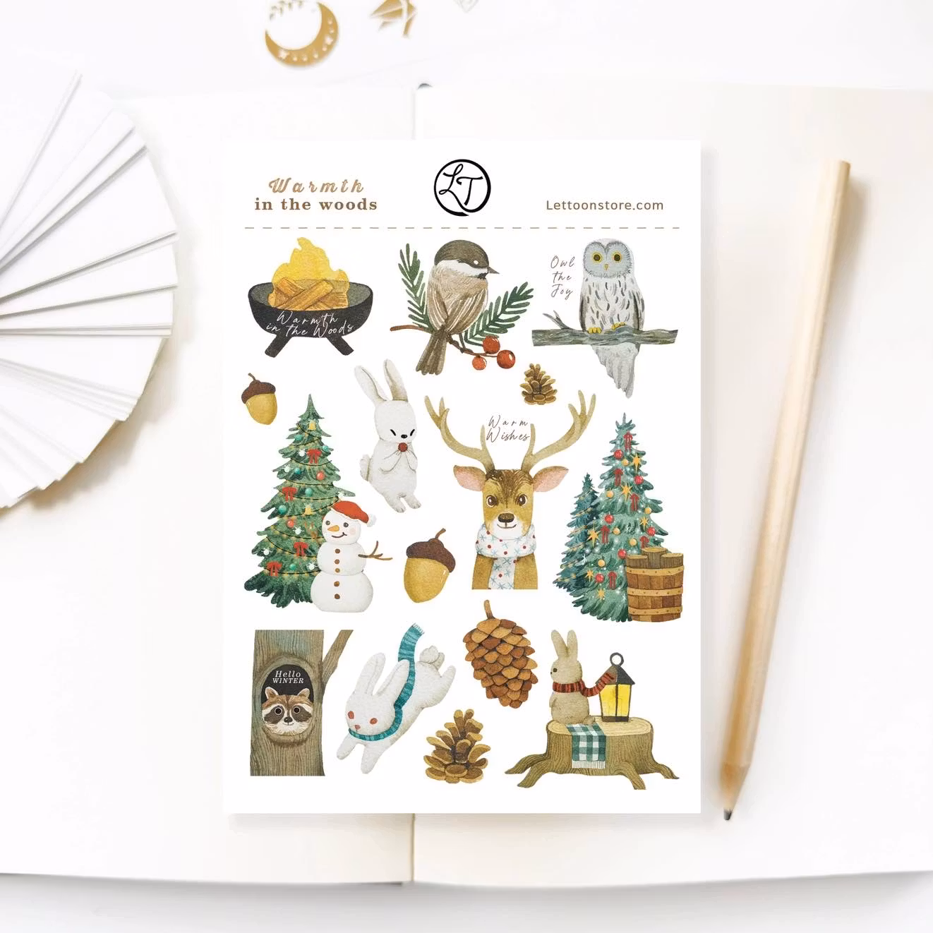 In stock. Stickers Lettoon - Warmth in the Woods 55 kr Add to basket Item number: LT-SWIW Brand: Lettoon A sticker sheet from Lettoon with cute animals and Christmas illustrations. Printed on textured paper.Quantity: One sheet of stickersSheet dimensions: 10.5 x 15 cm