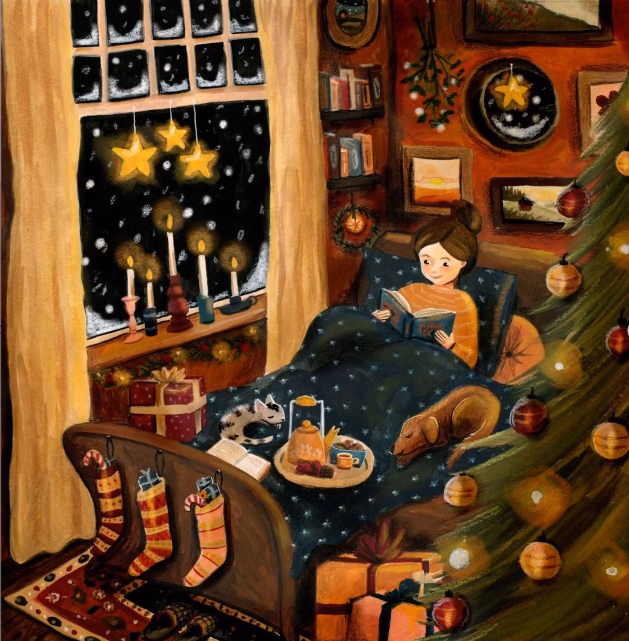 Vackert kort med Esther Benninks härliga illustrationer i ett kvadratiskt format. Kortet är dubbelvikt med plats att skriva en hälsning på insidan. Skicka en julhälsning till någon du håller kär eller använd kortet som ett konsttryck!