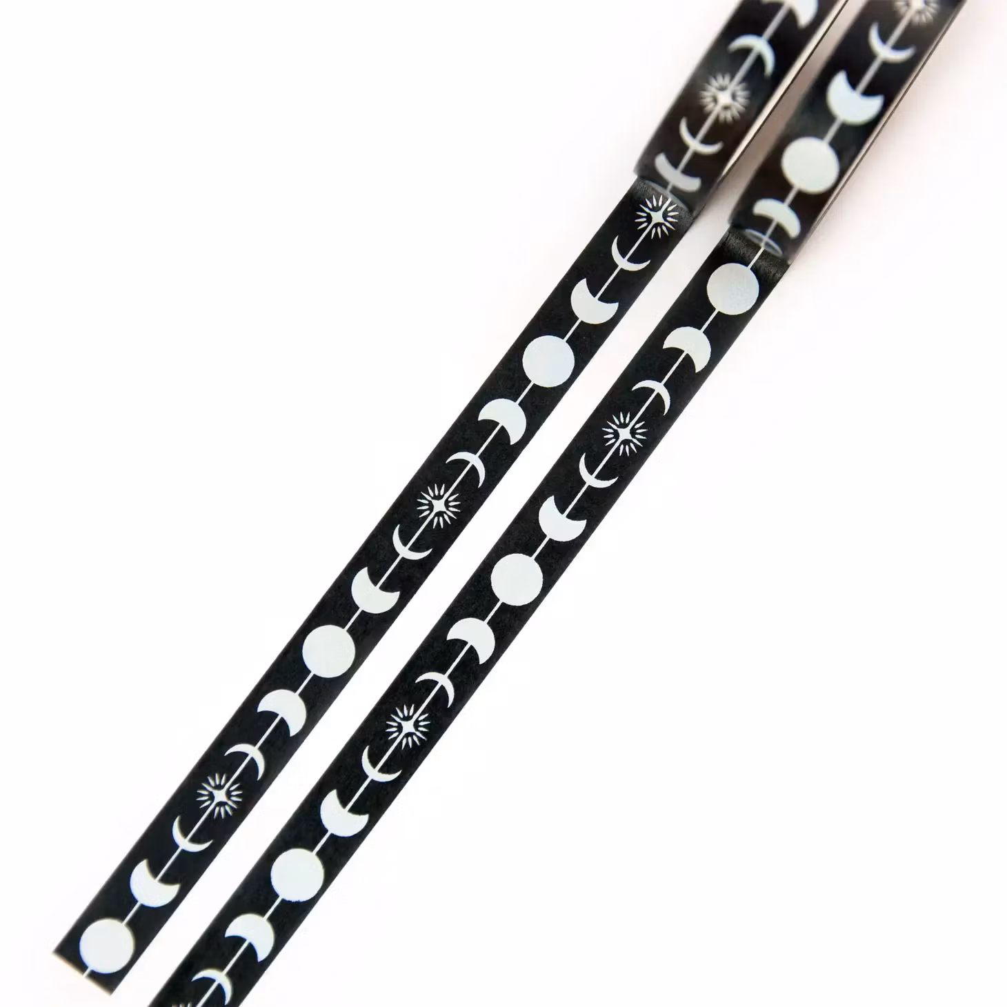 Den här washitejpen från svenska märket Willwa visar de olika faserna av månen i holografisk folie på en svart bakgrund.