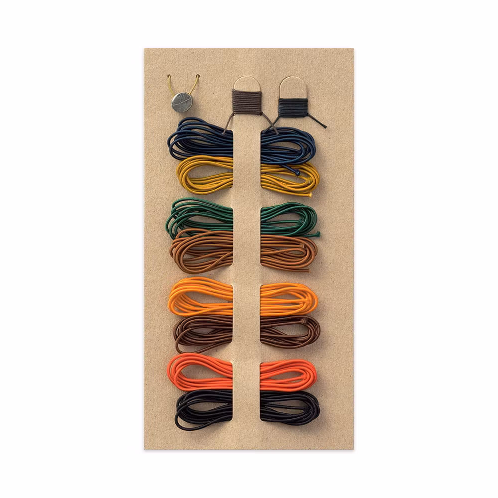 Reparationskit för din Traveler's Notebook som inkluderar åtta elastiska omslagsband, två bokmärkesband samt den karaktäristiska berlocken i tenn som sitter på ryggen av din bok. Ge din bok ett nytt utseende med en ny färg på omslagsbandet!
